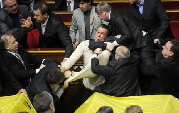 Επιπλέον υπήρξαν χειροδικίες και προπηλακισμοί τόσο εντός όσο και εκτός του ουκρανικού κοινοβουλίου. Αρκετοί πέταξαν καπνογόνα εναντίον των ομιλητών μέσα στο χώρο του κοινοβουλίου, ενώ ο πρόεδρος του σώματος, Βολοντίμιρ Λίτβιν, δέχτηκε επίθεση με αυγά και αναγκάστηκε να προφυλαχθεί κάτω από την ομπρέλα του!