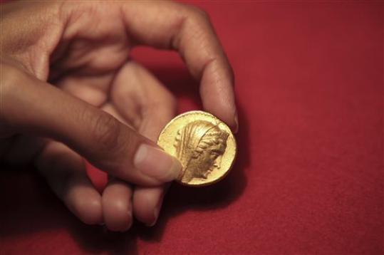Σύμφωνα με τον υπεύθυνο της υπηρεσίας αυτό το νόμισμα, που ζυγίζει έξι φορές περισσότερο από τα κανονικά νομίσματα, είναι ένα μενταγιόν που χρησιμοποιούνταν στη λατρεία της Αρσινόης.