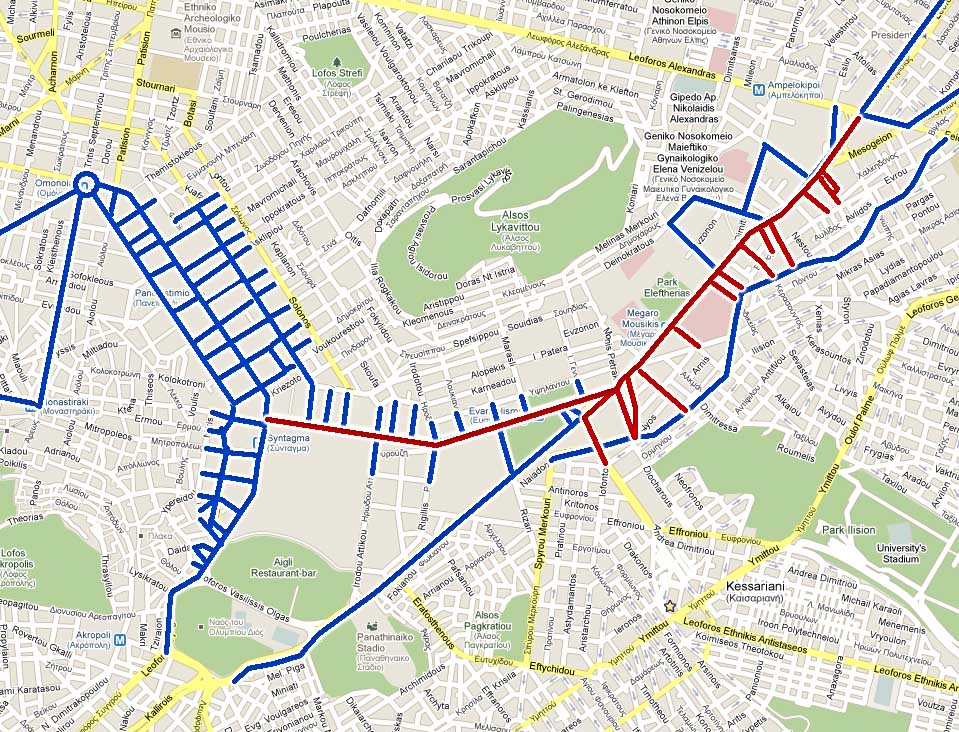 - Λούρου, Λαμψάκου, Σεμιτέλου, Κερασούντος, στο τμήμα τους μεταξύ της Λεωφ. Βασ. Σοφίας και της οδού Μιχαλακοπούλου