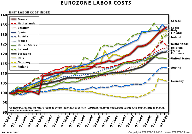 Βέβαια υπάρχουν εκατοντάδες μεταβλητοί που επηρεάζουν αυτό το διάγραμμα. Το ότι για παράδειγμα, δεν έχει αυξηθεί το κόστος ανά μονάδα εργασίας στην Γερμανία τώρα και πολλά χρονιά, δεν σημαίνει ότι οι εργαζόμενοι δεν παίρνουν αυξήσεις. Μπορεί να σημαίνει ότι ο ιδιωτικός τομέας έχει κάνει τεχνολογικές επενδύσεις τέτοιες που, αυξήθηκε η συνολική παραγωγή χωρίς να χρειάζονται περισσότερα εργατικά χέρια.